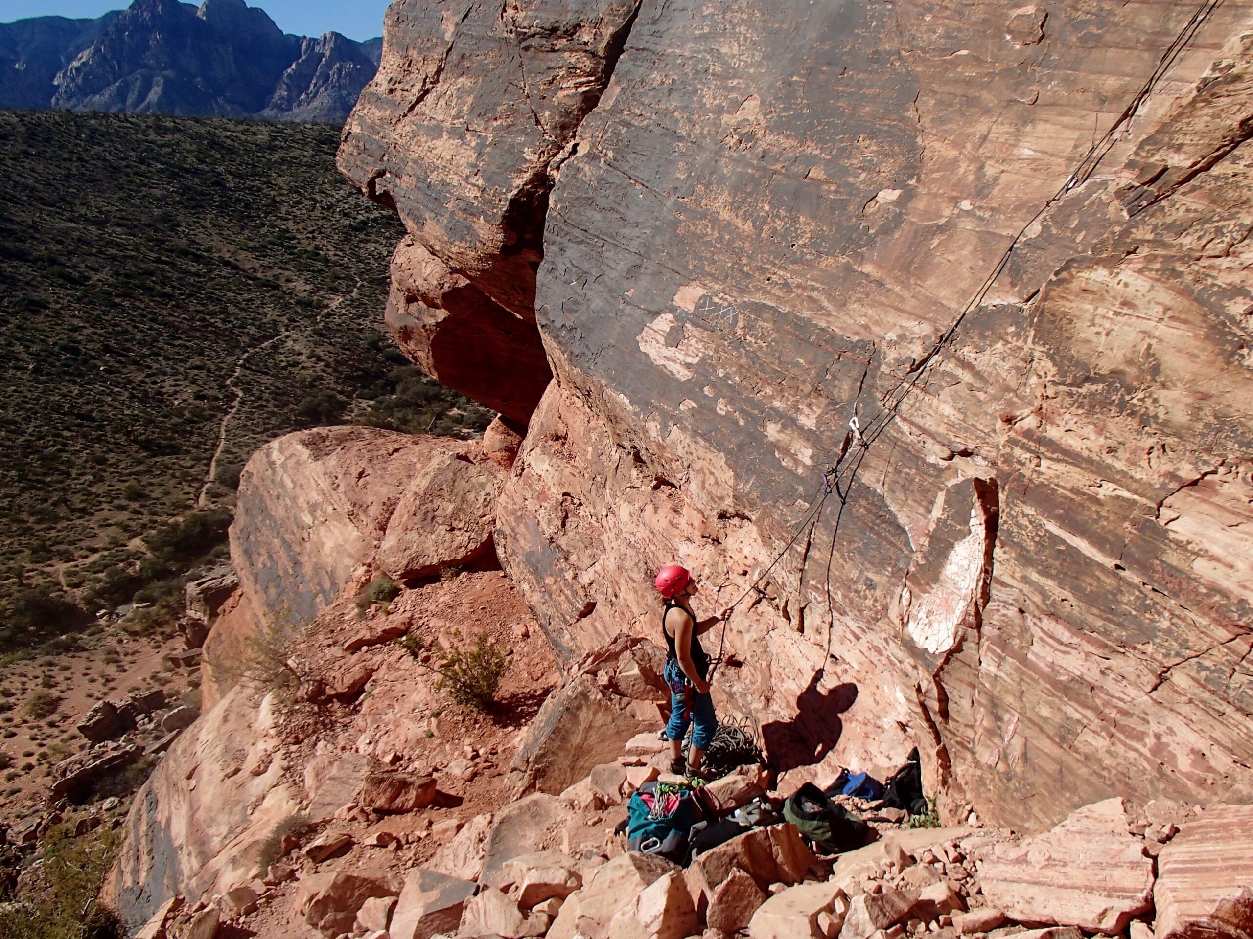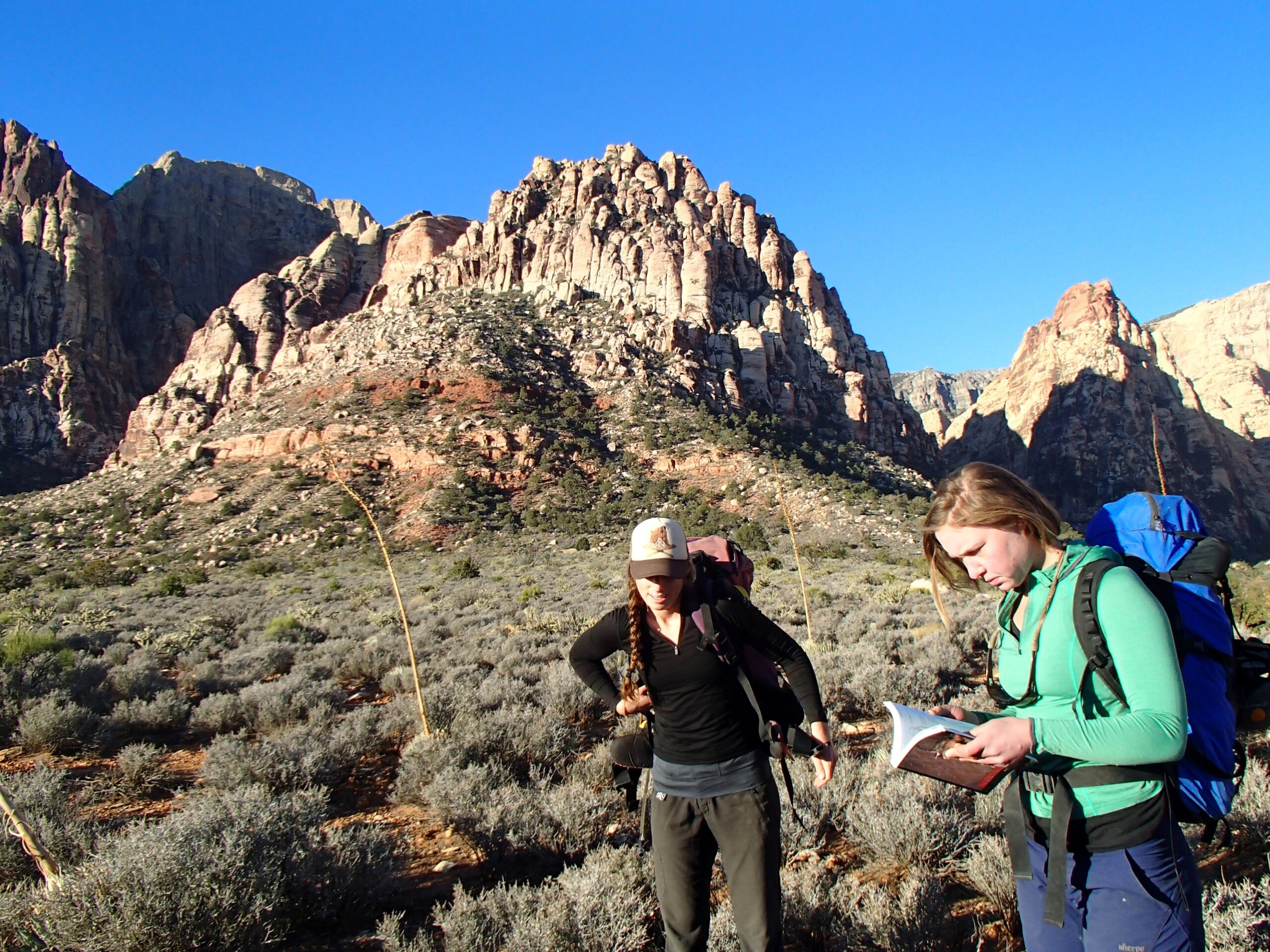 All three of us had recently completed the NOLS Women’s Mountaineering Seminar in the North Cascades together and we were feeling strong. Hadley and Alexa had climbed a multi-pitch in a neighboring canyon two days before, and the three of us had spent the previous day warming up at the “Moderate Mecca” in Red Rocks, an area chock-full of single-pitch traditional climbs.